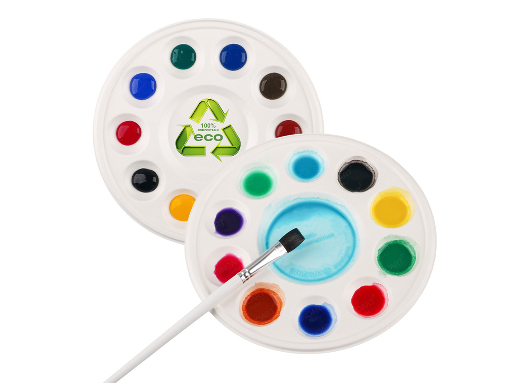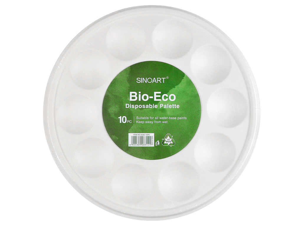 The Sinoart single-use disposable paint palettes are perfect for watercolor, gouache, ink, and other water-based paints, including acrylics. Made from sugarcane and bamboo pulp, they are 100% compostable and biodegradable, making them an eco-friendly choice. Ideal for workshops, events, or any situation where easy cleanup is a priority.