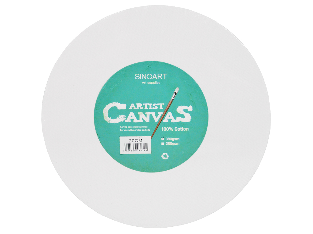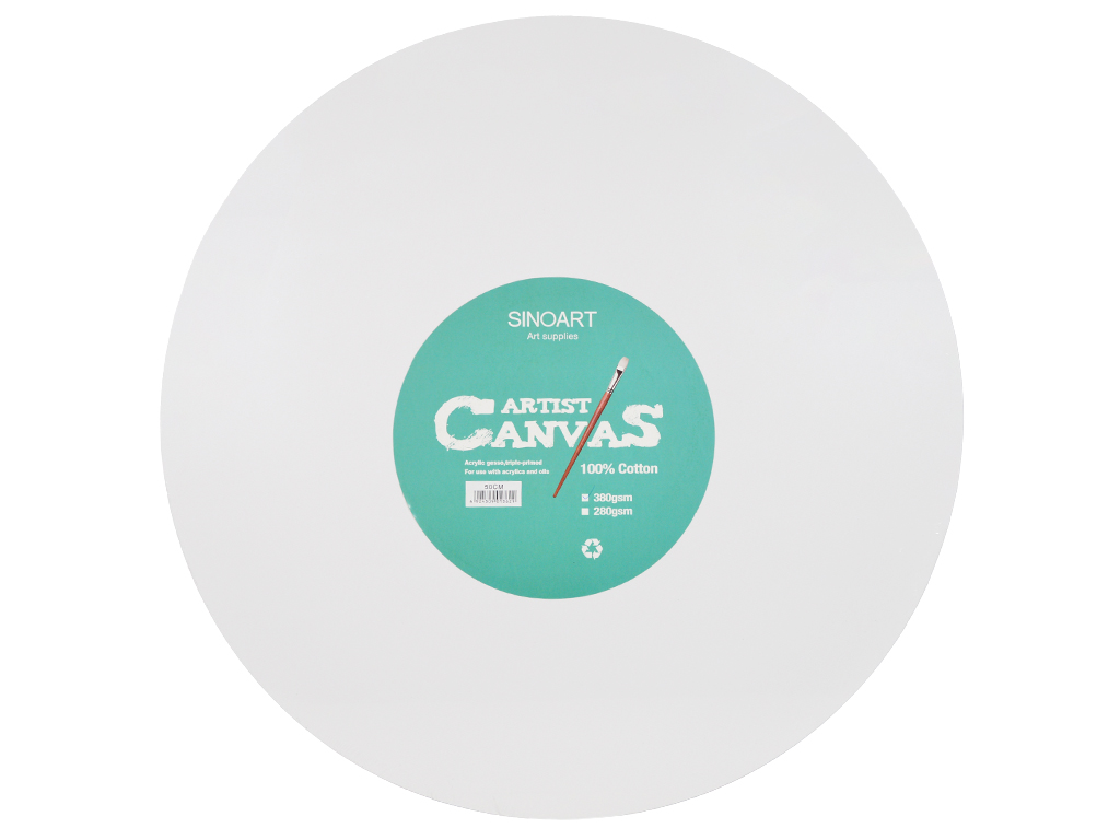 Sinoart round canvas is made from 100% cotton and is triple-primed with acrylic gesso for excellent paint adhesion and a strong, medium-textured surface. Ideal for both acrylic and oil painting. Stretched on an MDF frame. Thickness: 1,8cm