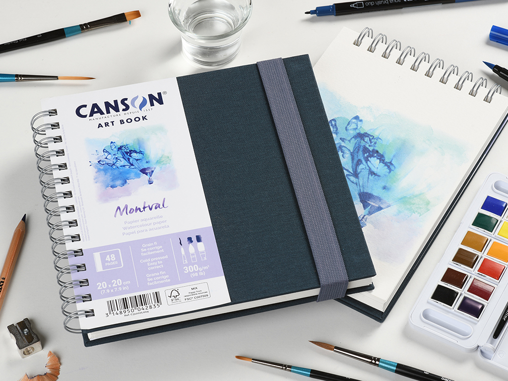 Watercolour book Art Book Montval 20x20cm/300g 24 sheets spiral hard cover with rubber band