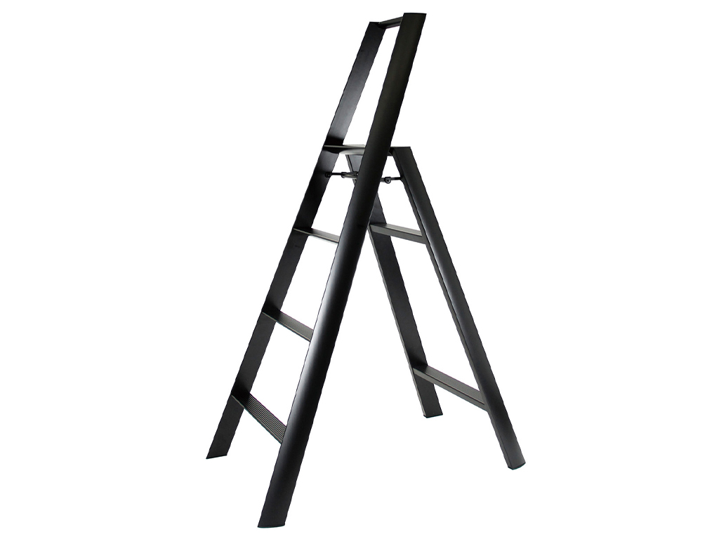 Vieglas, stabilas un izturīgas alumīnija trepes ar 4 pakāpienu. Pateicoties veiksmīgajam dizainam, šis vienkāršais mājsaimniecības piederums ir kļuvis par modernu telpas dizaina elementu. Kāju un pakāpienu trīsstūra griezums piešķir kājām modernu gaumīgumu un nodrošina šaurāku konstrukciju. Tādēļ trepes ir vienkāršāk novietot uzglabāšanai. Noapaļota un gluda forma, virsma un stūri, kā arī slēpti stiprinājuma elementi. “Best of the Best” Red Dot Award balvas laureāts.