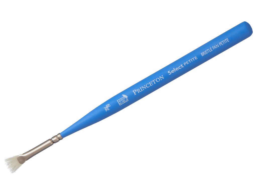 Princeton Select Petite Bristle vēdekļveida otas ir lieliski piemērotas sapludināšanai, malu mīkstināšanai un dabisku tekstūru, piemēram, lapotnes, zāles vai matu, veidošanai. To izplestie sariņi ļauj smalki uzklāt krāsu vai veidot tekstūru ar kontrolētiem triepieniem.