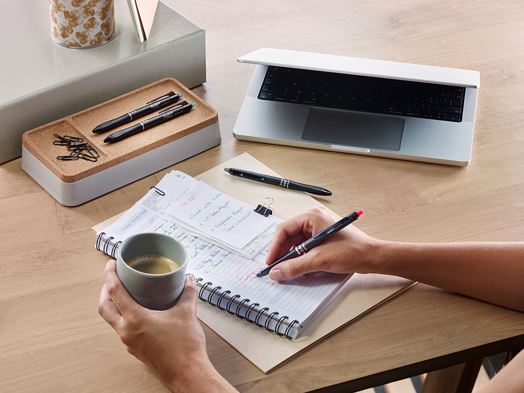 Kirjuta, kustuta ja kirjuta uuesti! Pilot FriXion Ball Plus on elegantne ja keskkonnasõbralik kustutatav tintpliiats, mis on loodud neile, kes otsivad mitmekülgseid kirjutamislahendusi. Selle patenteeritud temperatuuritundlik tint tagab puhta ja sujuva joone, mida saab hõlpsalt kustutada ja ümber kirjutada. Mugava kolmnurkse kuju ja elegantse mattmusta varrega sobib see ideaalselt kasutamiseks nii tööl, koolis kui ka kodus.