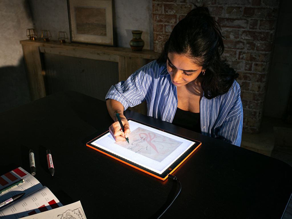Ere, õhuke ja kerge Daylight Wafer valguskast on asendamatu töövahend igas loomingulises töökeskkonnas. Kvaliteetsed LEDid tagavad ühtlase, servast servani valgustuse, mille tugevust saad vastavalt oma vajadustele muuta – ideaalne erineva paksusega paberite ja erinevate kangapaksuste jaoks. Integreeritud joonlaud, millel on märgistused nii sentimeetrites kui tollides, suurendab töö täpsust.